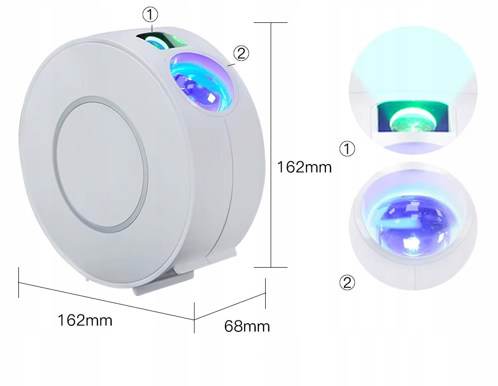 Компактное устройство с вращающейся головкой и подсветкой, излучающей разноцветные туманности и звезды. Готов к использованию прямо из коробки.