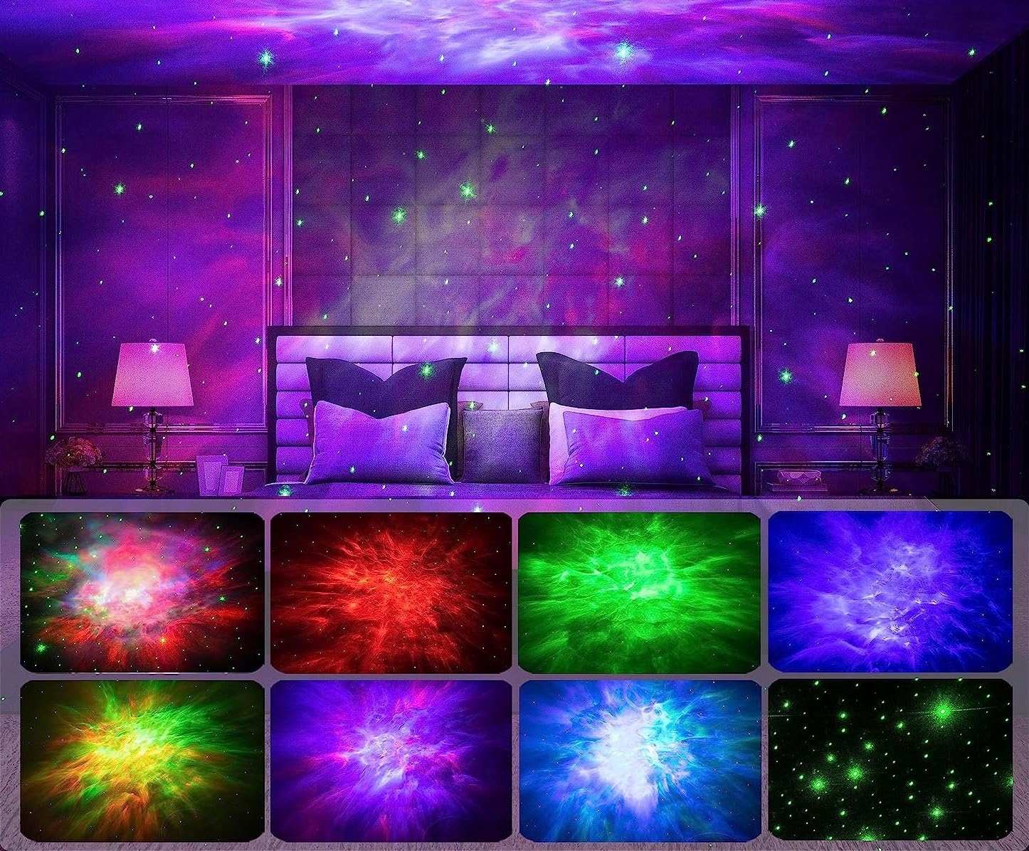 ✅ УНИКАЛЬНЫЕ ТЕМЫ ТУМАННОСТИ: очаровательные туманности и мерцающие звезды создадут волшебную атмосферу в вашей комнате. Включите проектор на стене или потолке, чтобы почувствовать себя в космосе.