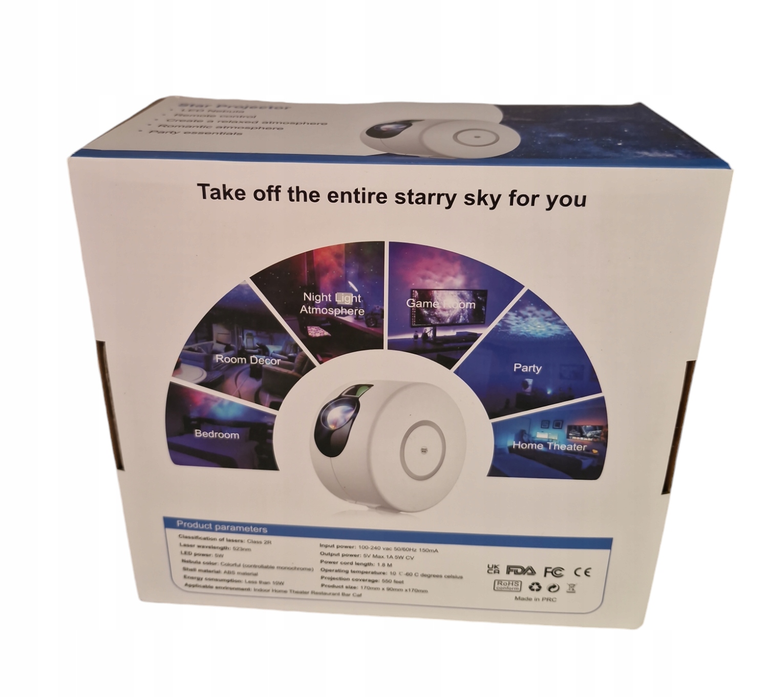 Проекции не только четкие, но и чрезвычайно яркие. Использование новейших технологий заставляет звезды сиять с необычайной интенсивностью, а туманности плавно двигаться, создавая завораживающий эффект. Это идеальное решение для романтических вечеров, отдыха после тяжелого дня или творческих дружеских встреч. Звездный проектор также идеально подходит в качестве уникального декоративного элемента для особых случаев, таких как дни рождения, вечеринки или просмотры кино.