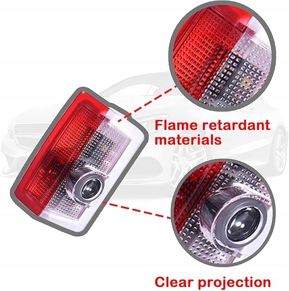 Практический и стильный : установленные на автомобильных дверях, эти проекторы логотипа отображают супер яркий, прохладный белый логотип на полу после открытия двери. Это не только эффективный внешний вид, но и функциональное решение, которое помогает в ориентации в темноте и предупреждает о риске открытых дверей, повышая безопасность. Установка дверного освещения Yobuyek быстрая и без проблем. Это не требует бурения, кабелей или повреждения автомобиля. Всего несколько простых шагов для установки проекторов, что делает его удобным решением для всех. Благодаря объективу HD, проекторы предлагают высококачественное изображение, более четкое, чем другие проекционные светильники, что обеспечивает превосходную видимость. Изготовлен из прозрачного огневого материала, и ядро представляет собой прочную алюминиевую пластину, устойчивую к высоким температурам (эксплуатационный диапазон -40 ℃ ~ 105 ℃), обеспечивая надежность и безопасность использования. b>: проекторы логотипа подходят для серии автомобилей A B C E/M/ML/GL/GLA/GLC/GLS/AMG. Это отличный выбор для установки в двери, создавая уникальную атмосферу, особенно в темноте, добавляя небольшую элегантность и романтизм