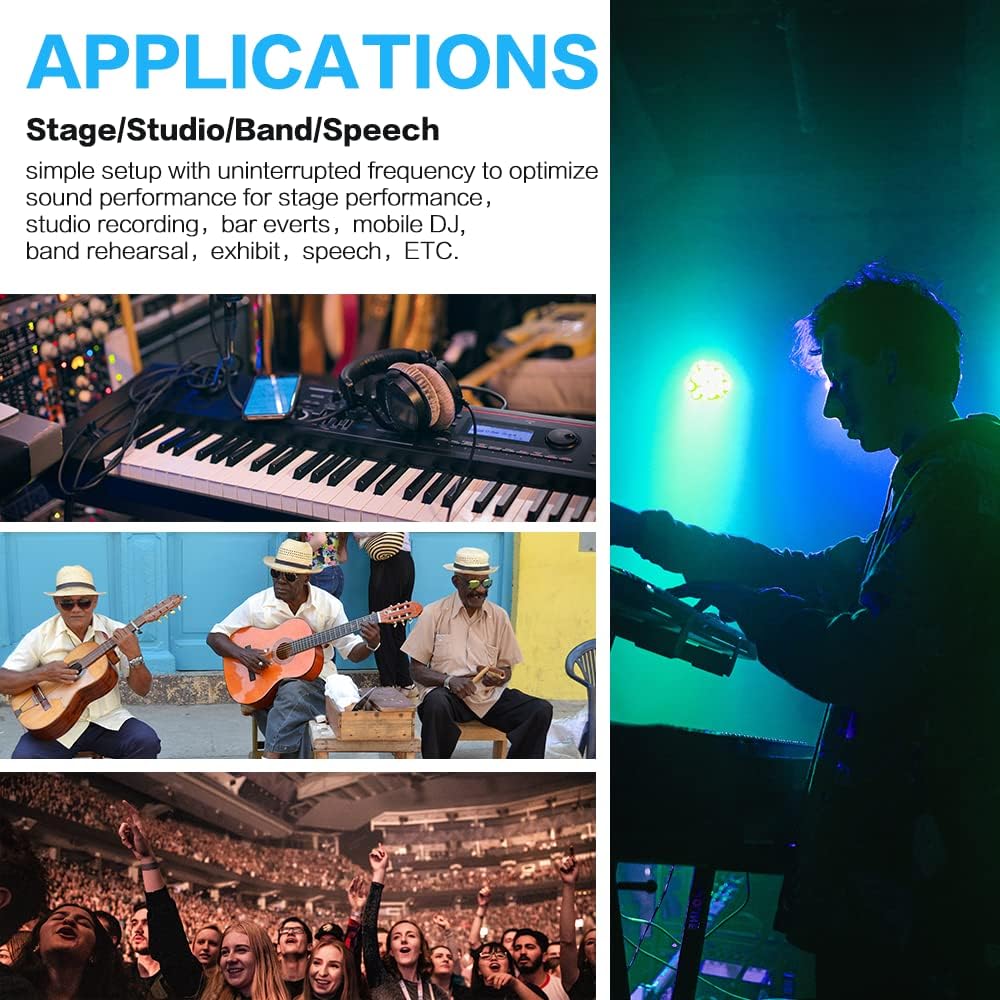 <р>1. БЕСПРОВОДНАЯ РАБОТА: Частота УВЧ постоянна и проста в использовании. Беспроводная система позволяет пользователям свободно перемещаться по сцене и в студии на расстоянии от 140 до 50 футов на открытом пространстве в пределах прямой видимости. * На больших расстояниях избегайте толстых стен, стеклянных и металлических блоков. 2. Используется на сцене и в звуковых ящиках: встроенные схемы лимитера устраняют искажения при чрезмерных входных уровнях. Передняя 1/4-дюймовая стереопанель мониторинга оснащена разъемом для наушников. При использовании на сцене он может заменить полное традиционное оборудование для звукового мониторинга и добиться превосходного эффекта прослушивания. 3. Схема динамического расширения значительно улучшает соотношение сигнал/шум. Простой светодиодный дисплей, совершенно новый дизайн. 4. Приемник и передатчик: индикатор низкой мощности и индикатор приема радиочастотного сигнала. Требуются две батареи типа АА и эффективная силовая цепь, длительный срок службы. (не входит в комплект) Передатчик с выходом для наушников 6,35 мм, индикатором сигнала автофокусировки, балансным и небалансным общим разъемом.