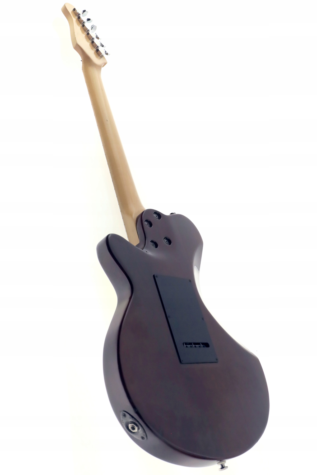 Рычаг тремоло в этой модели вставлен, а не вкручен, поэтому можно прикрепить любой рычаг, например от Fender (только тот, что потоньше) и противодействовать. с винтом, который находится сбоку от гнезда для рычага - это очень удобное решение, потому что, во-первых, мы не зацикливаемся на одном типе рычага, а во-вторых, регулируя давление винтом, мы можем установить сопротивление рычага, чтобы он не летал веером, а работал в заданном нами диапазоне.