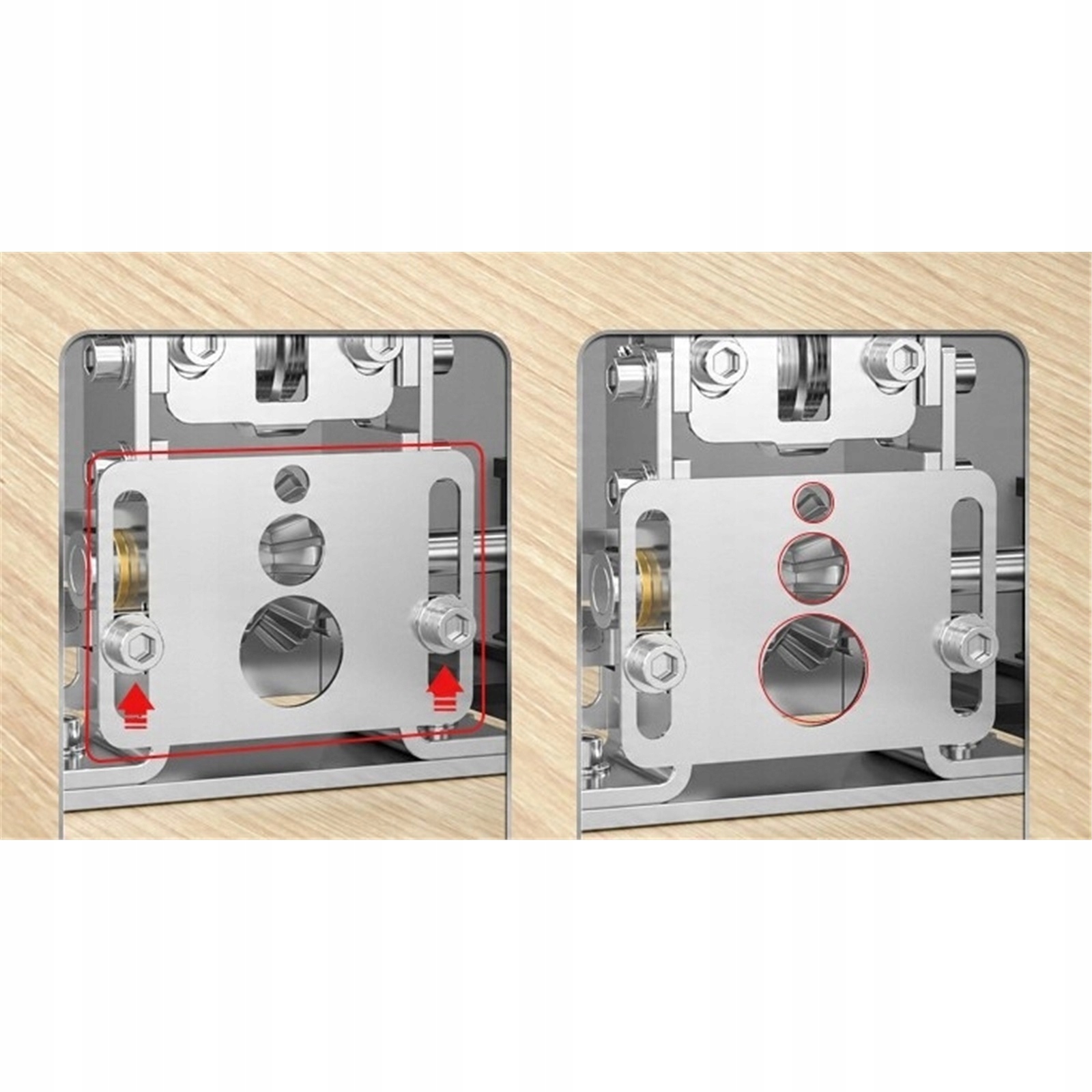 Имеет три различных размера отверстий подачи (диаметр 7 мм, диам. 13 мм и диам. 21 мм) для кабелей различной толщины.