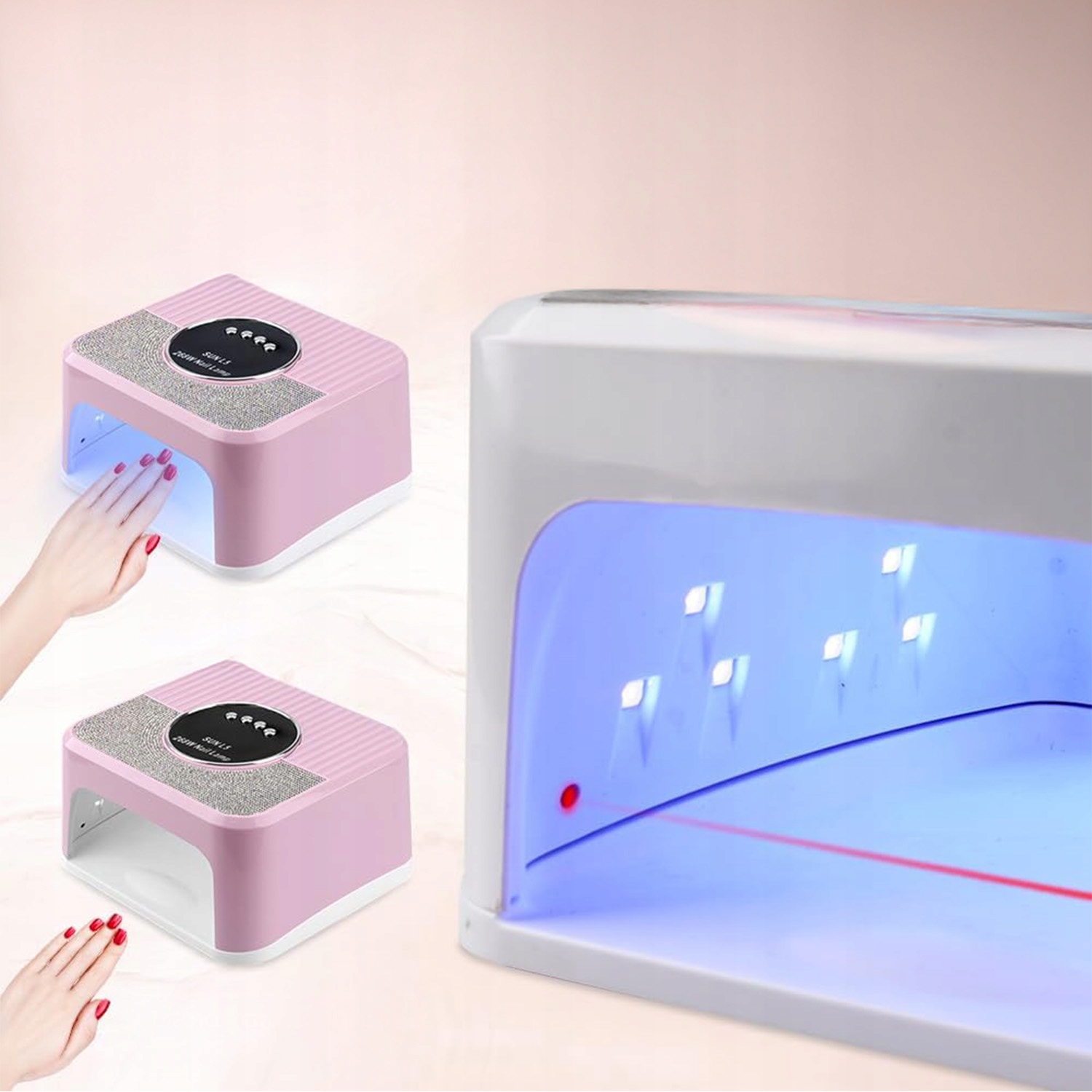 Наша сушилка для ногтей быстро сушит гелевые ногти, оснащенная 45 светодиодами для полного покрытия на 360°. Эти 45 мощных светодиодов быстро отверждают все гель-лаки и эпоксидные изделия, такие как базы, топы, цветные гели, акрил, твердые гели, архитектурные гели, скульптурные гели, драгоценные камни и т. д. Обратите внимание, что лампа не подходит для обычных лаков для ногтей, которые не подлежат отверждению.