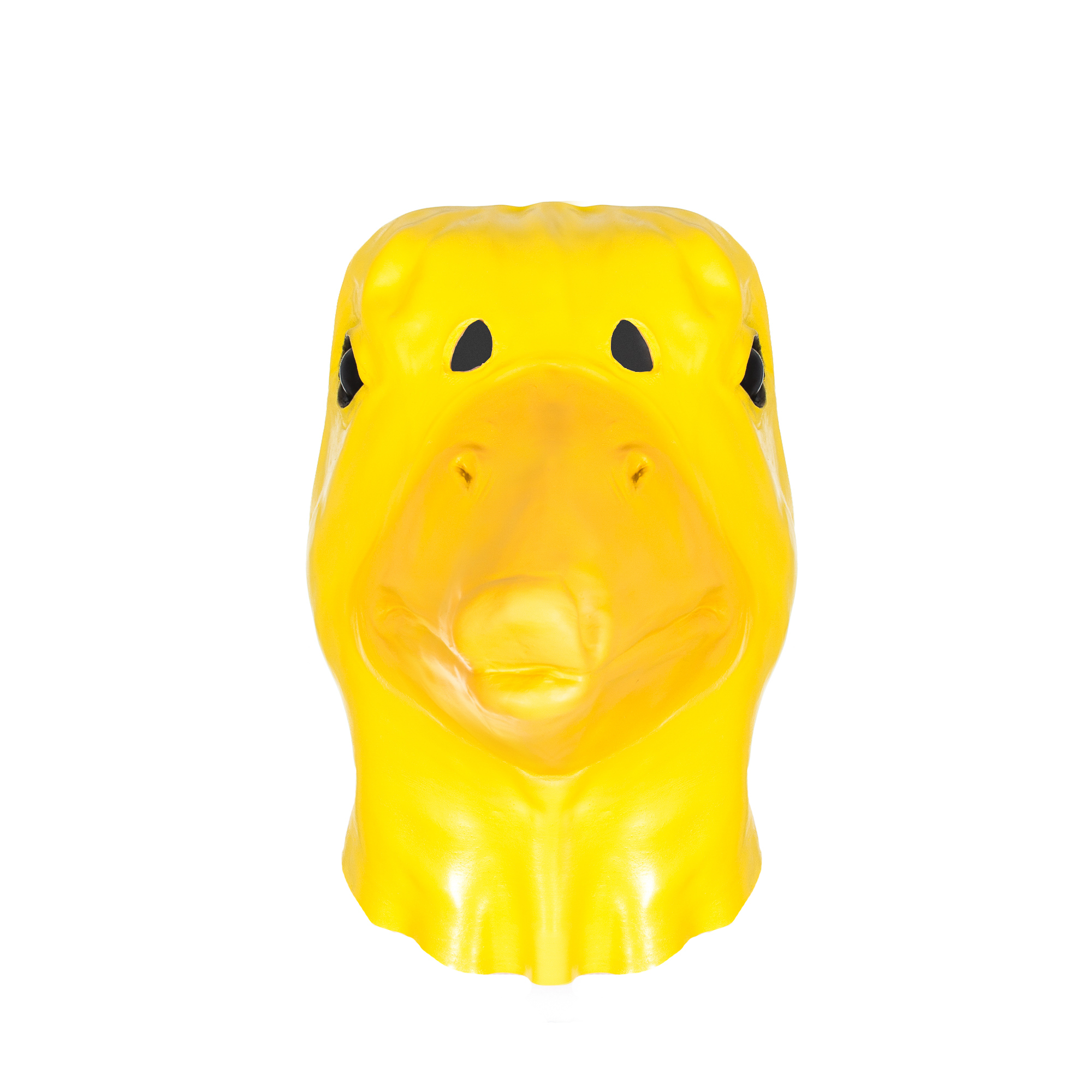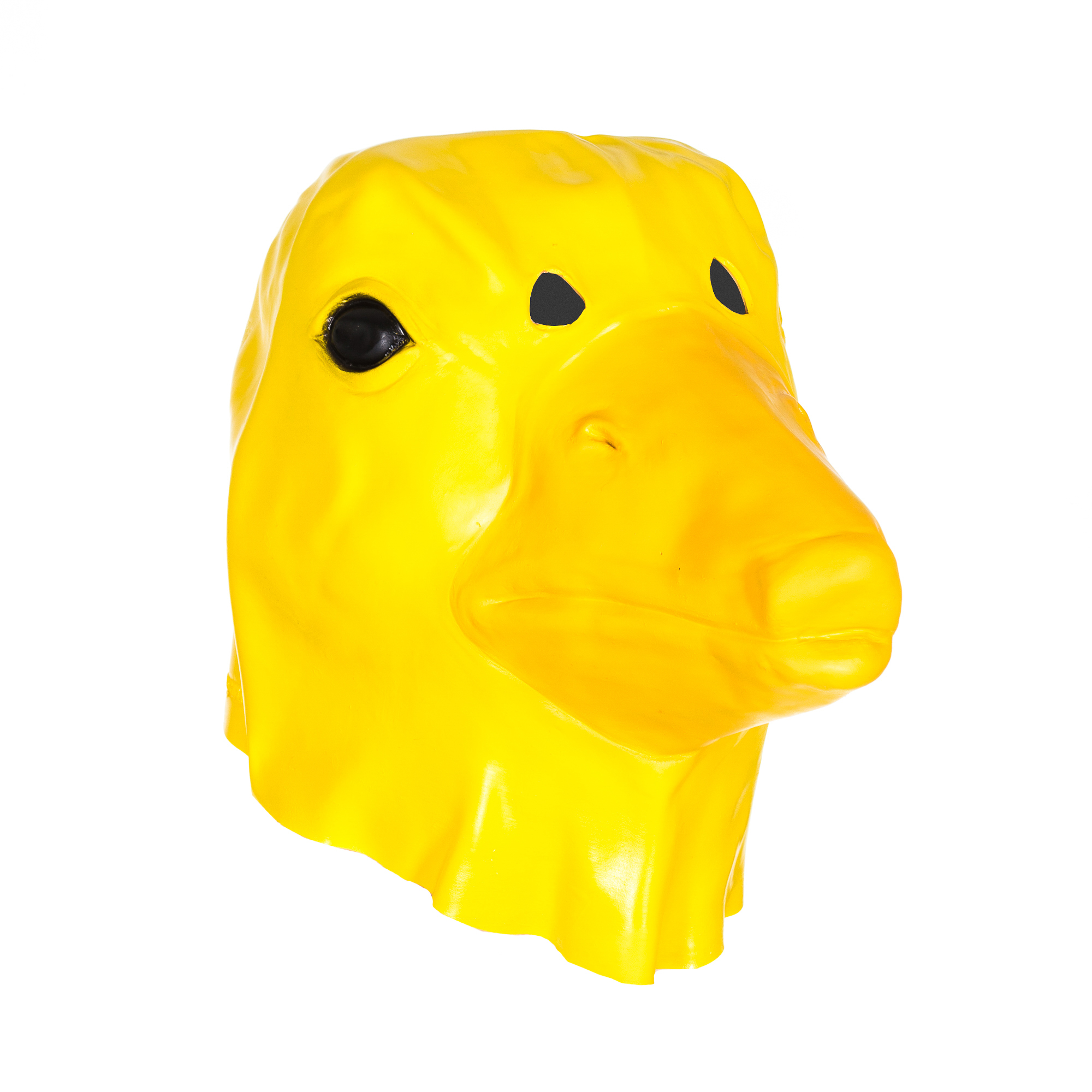 Маска утки изготовлена из латекса. Он покрыт безопасными для кожи красками. Закрывает всю голову и шею. Маска имеет длинный и сильный клюв, благодаря чему животное выглядит очень реалистично.