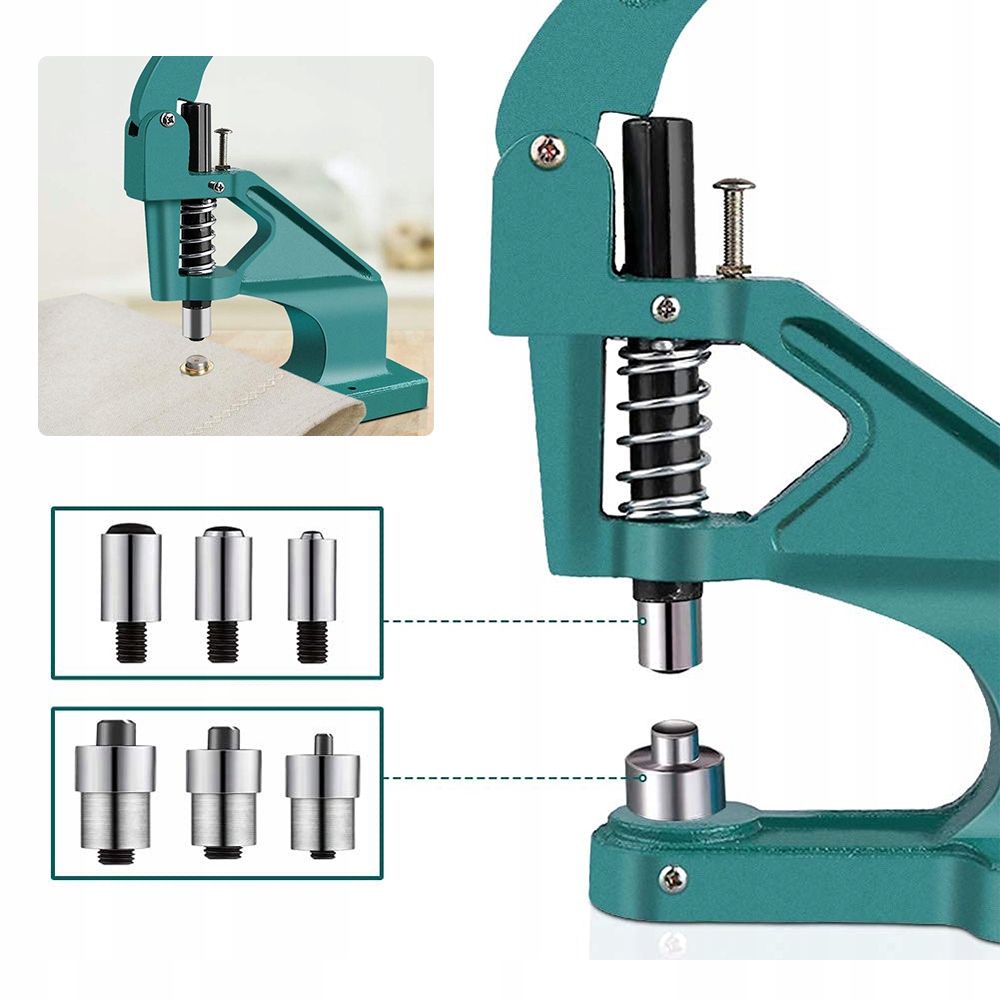 В комплект пружинных клепальных инструментов входят три плашки (6/10/12 мм) и 900 заклепок. Этот практичный заклепочник экономит деньги и время, что делает его незаменимым для портных, мастеров, производителей вывесок и производителей.