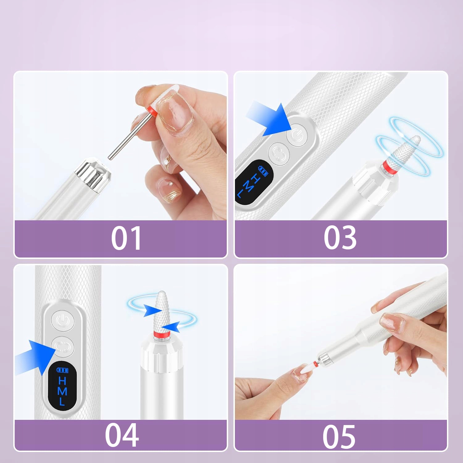 ✔ 【Регулируемая скорость】 Беспроводная тренировка ногтей имеет светодиодный дисплей и кнопку управления скоростью. Регулировка скорости 3 скорости, до 18 000 об / мин, регулируемые направления вперед и назад. Он может легко измельчить, гравютировать, разрезать, полировать, удалять гелевой лак и слой шкуры.