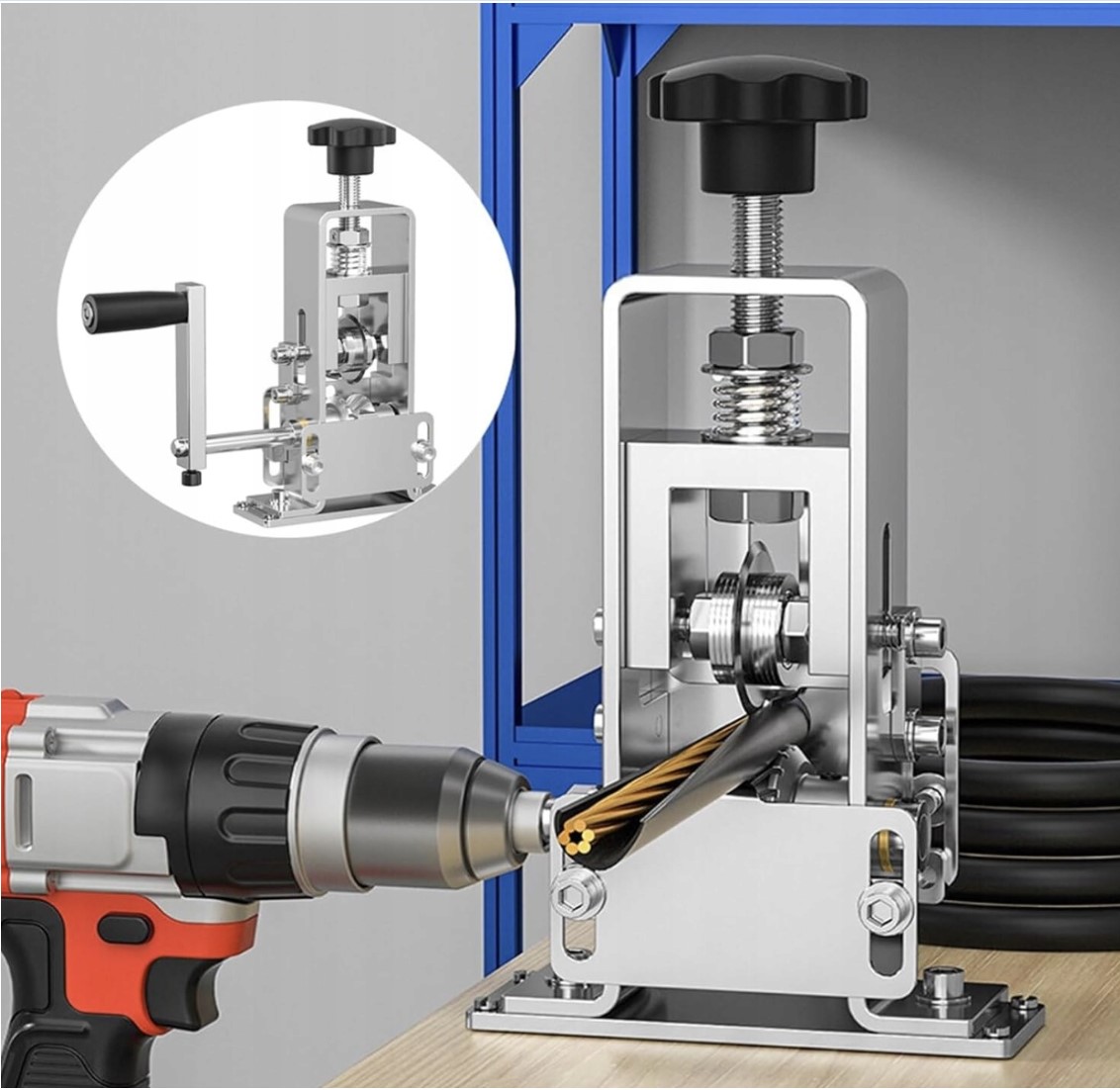 Благодаря нашему портативному устройству для зачистки кабеля процесс снятия изоляции становится простым, быстрым и беспроблемным. Этот инструмент является незаменимым помощником при переработке проволоки, экономя время и силы, обеспечивая при этом высокое качество и точность работы.