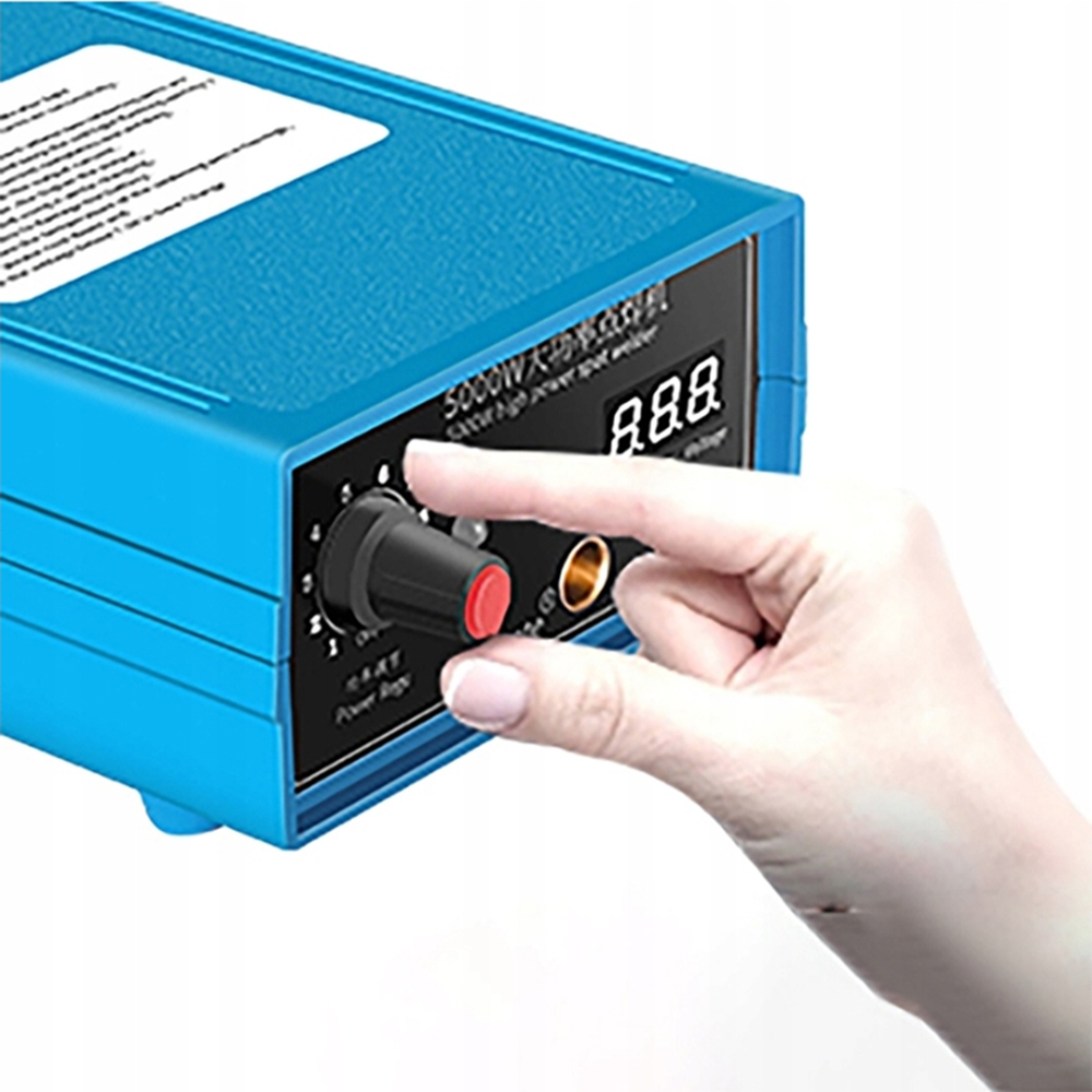 Этот сварщик имеет регулирование мощности с ручкой, с 10 уровнями мощности на выбор. Вы можете настроить выходную мощность, повернув ручку, чем выше значение, тем выше выходная мощность