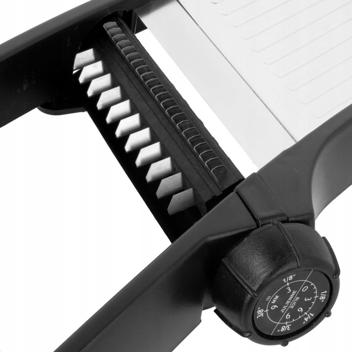 - Регулировочная ручка вращает лезвия, обеспечивая более безопасную и простую регулировку толщины шинковки.