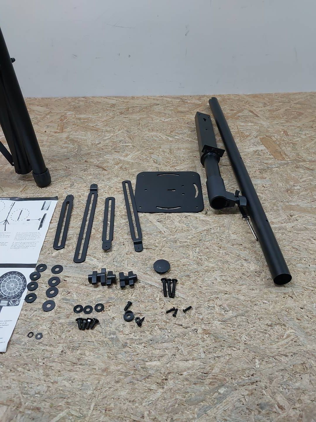Bulls Vibex H — практичная подставка для дартса, которая подойдет как дома, так и в путешествии. Благодаря устойчивому трехногому основанию и регулируемому кронштейну вы можете легко отрегулировать высоту щита в соответствии с вашими потребностями – диапазон регулировки составляет от 130 до 220 см. Штатив легкий (весит всего 5 кг) и при этом изготовлен из прочных материалов: алюминия и пластика, что обеспечивает долговечность и устойчивость к интенсивному использованию.