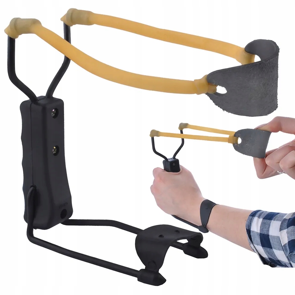 Профессиональная рогатка для стрельбы, небольшая опора Стрелковая рогатка — идеально подходит для рыболовов и не только. Рогатка особенно полезна при забрасывании приманки в водоем на большое расстояние. Имеет прочные и долговечные резиновые ленты и корзину, позволяющую стрелять снарядом на расстояние до 500м. Рукоятка эргономичной формы с противоскользящей поверхностью идеально лежит в руке — пользоваться рогаткой не устанете даже после множества выстрелов. Дополнительно имеется поддержка для предплечий и устойчивые к сильному растяжению резинки.