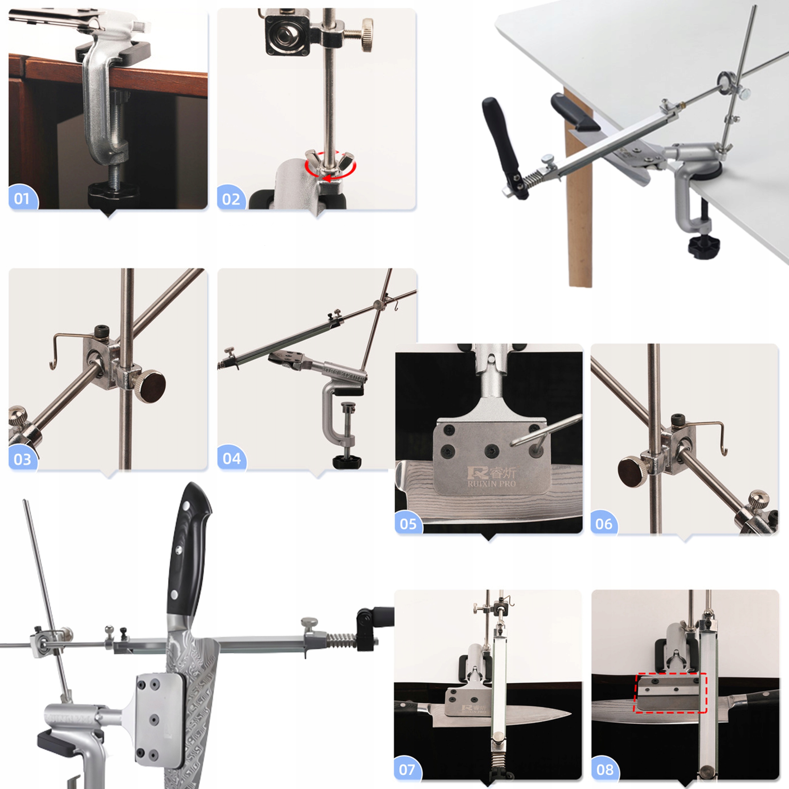 ⭐Точилка для ножей имеет угол заточки 360°. Двусторонняя на 360°: точилку можно вращать на 360°, что позволяет затачивать ножи под разными углами, которые можно регулировать поворотом винта на вертикальной планке.