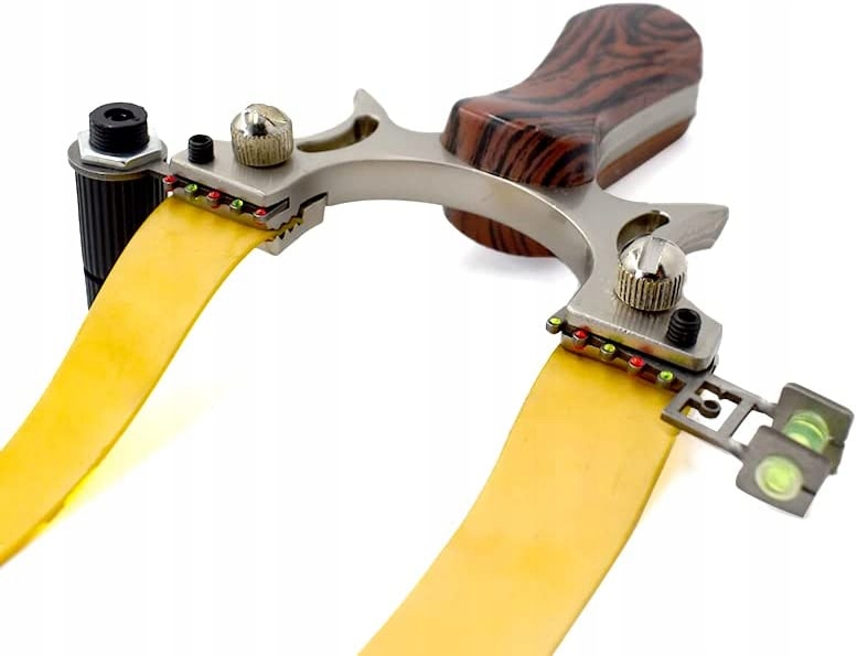 Рогатка изготовлена из прочных металлических сплавов. Более того, эта модель отличается уникальным дополнительным оборудованием. Лазерная указка и уровень помогают найти нужную цель и особенно полезны при динамичной стрельбе.