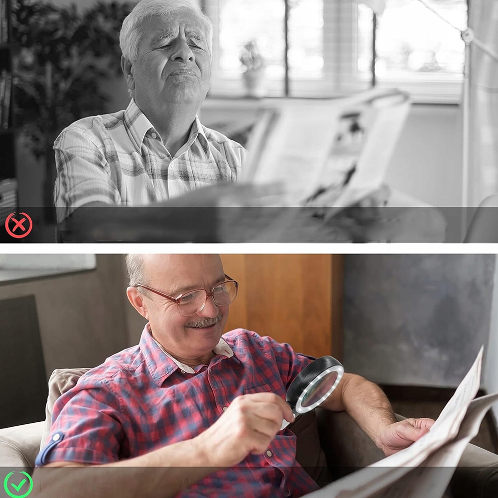 🔍 【Широкий спектр применения】:Ручная лупа с подсветкой подходит для пожилых людей. используйте инструкции, чеки, рецепты, напечатанные мелким и мелким шрифтом на флаконах с лекарствами, а также для чтения книг, газет, журналов и т. д.