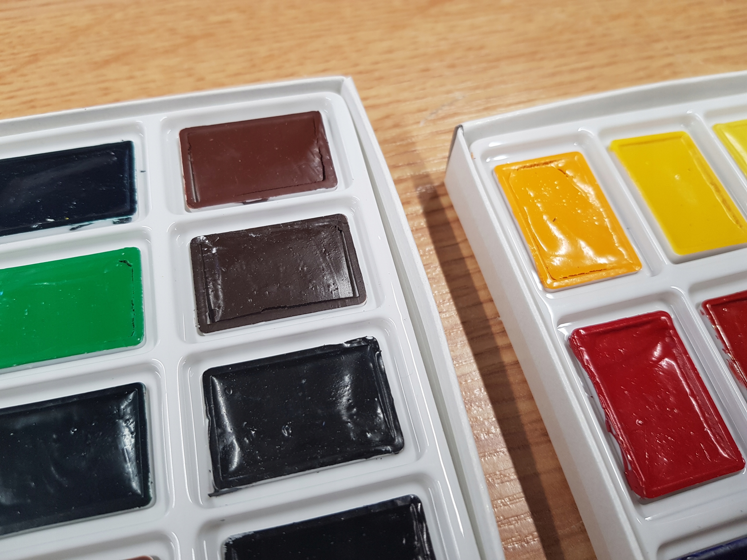 Некоторые наборы могут содержать потрескавшиеся акварельные краски. Это естественное явление и не свидетельствует о том, что краска некачественная или с истекшим сроком годности.