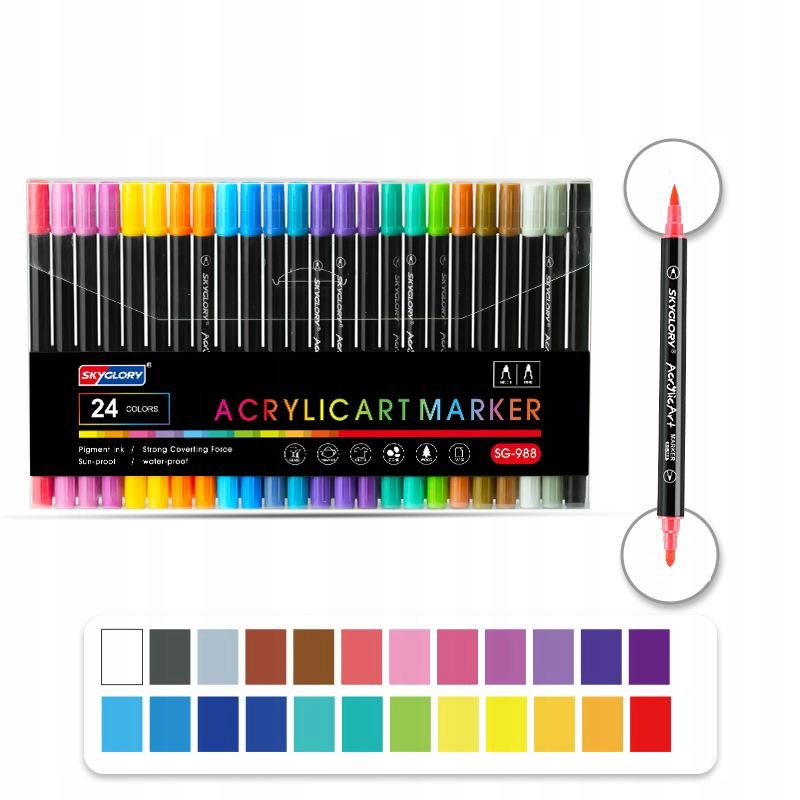 - ☑ Набор акриловых маркеров содержит 24 международных стандартных цветов, которые богаты цветами. Вы можете найти все цвета, которые хотите через ручку.