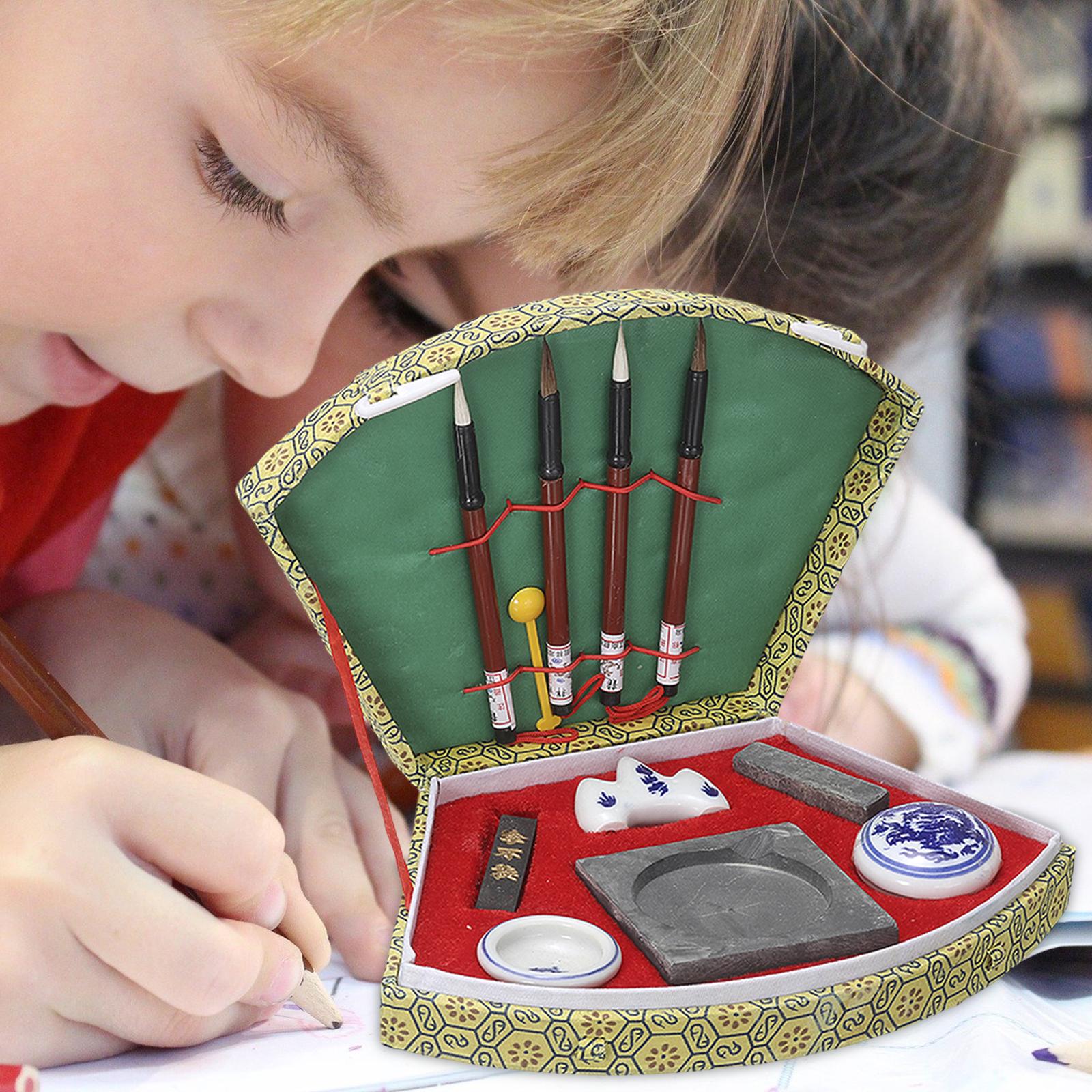Содержимое упаковки: 4 кисти для китайской каллиграфии, 1 коробка с блестками, 1 подушечка для чернил, 1 китайский чернильный камень, 1 китайская печать, 1 подставка для китайской кисти, 1 полоска для китайских чернил.