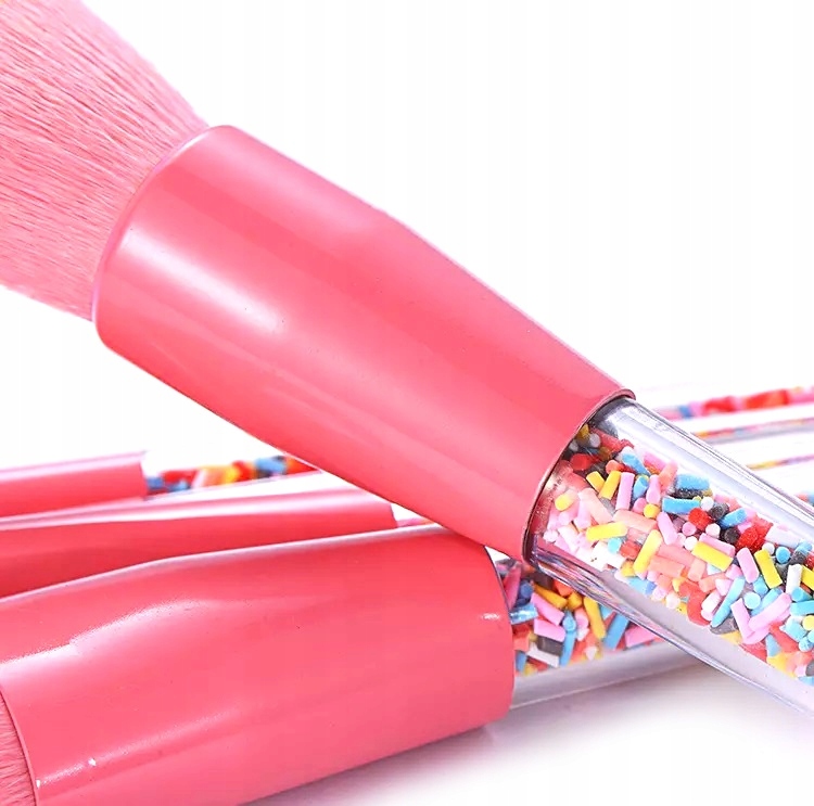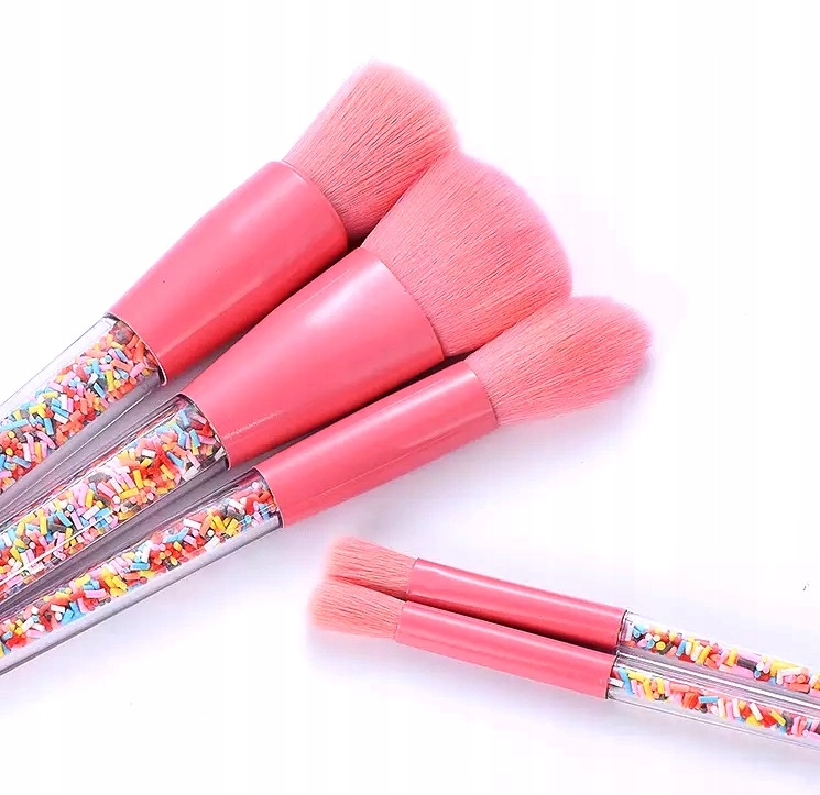 Набор из 5 профессиональных кистей для макияжа из высококачественной синтетической щетины, закрепленных в металлическом наконечнике, с пластиковой ручкой, наполненной разноцветными шариками.