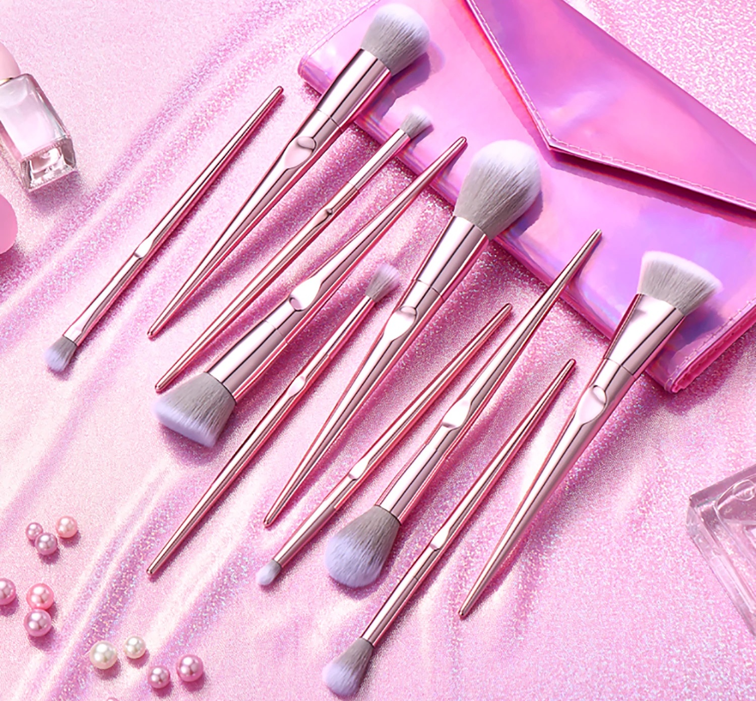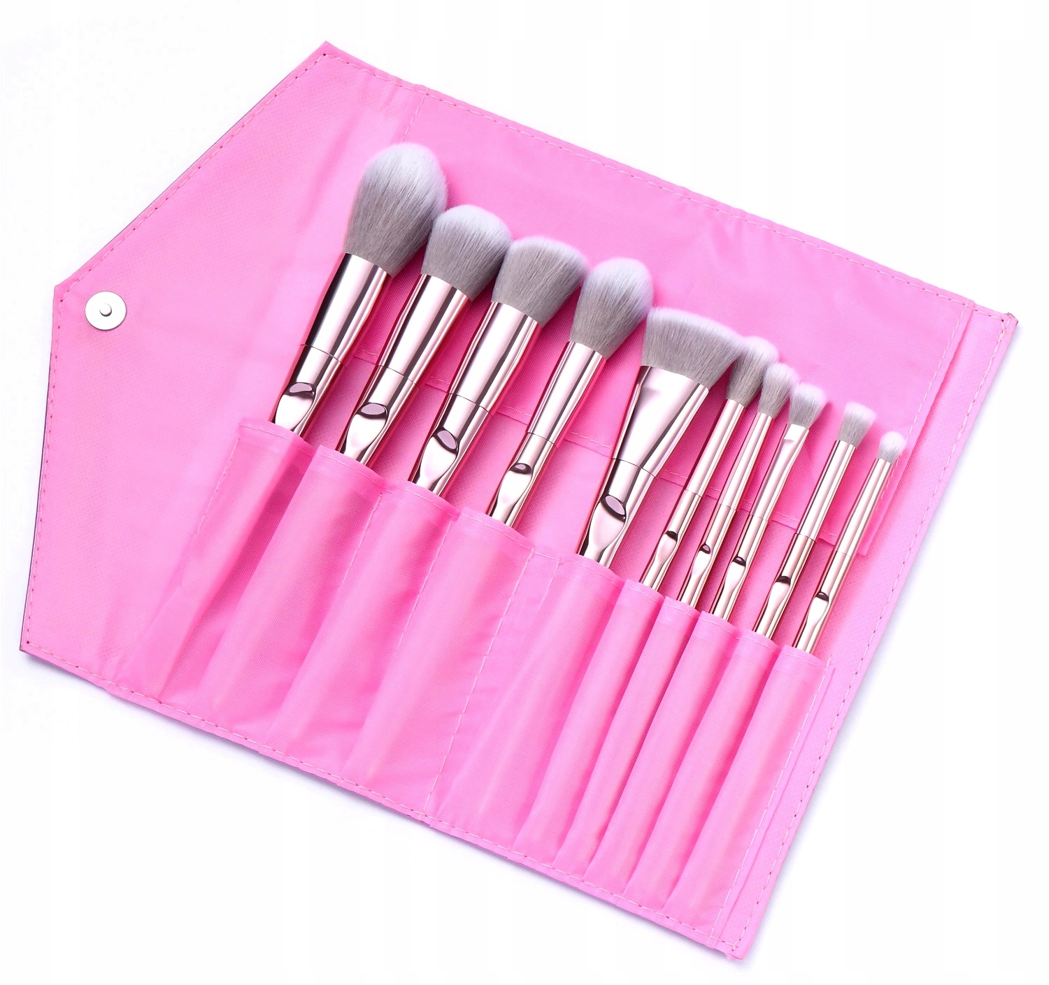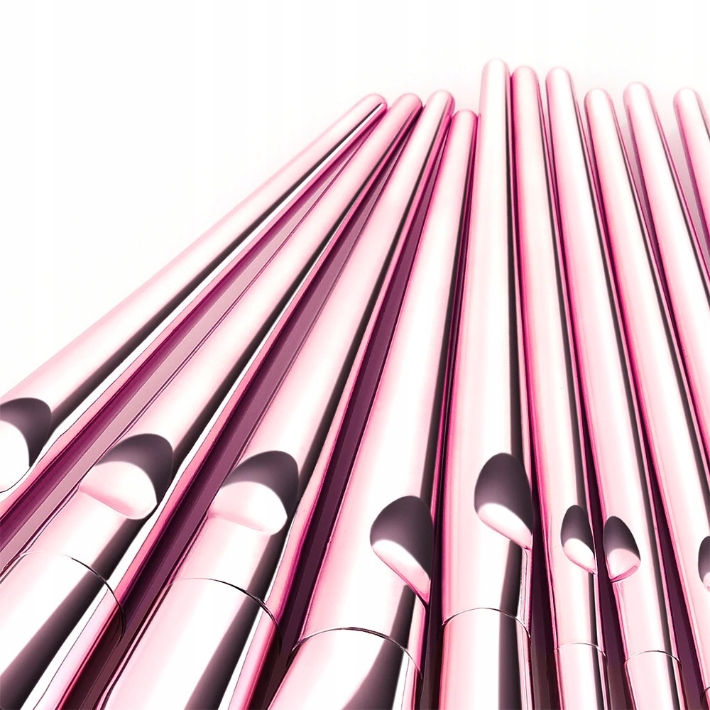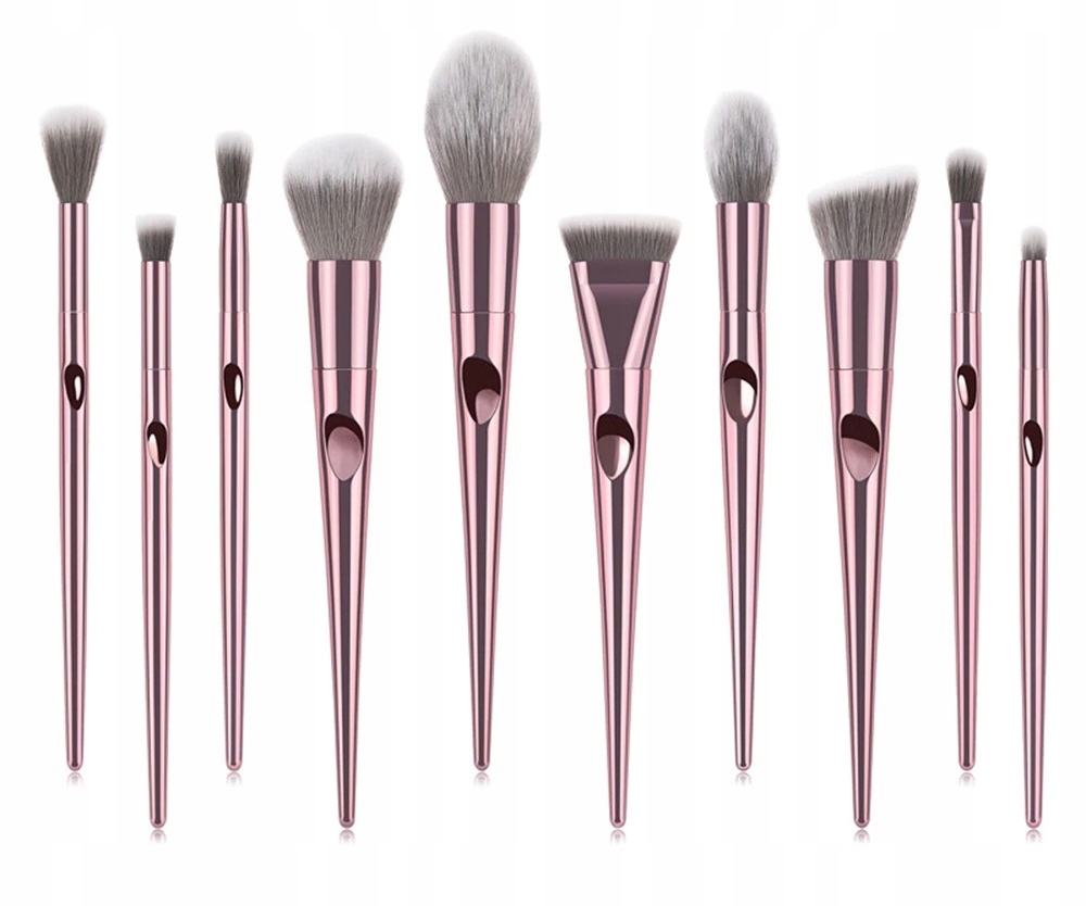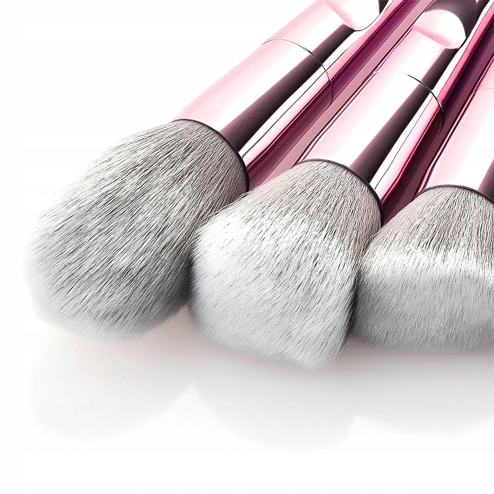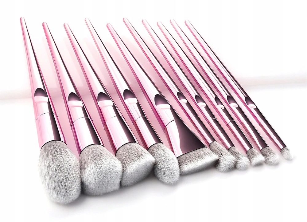 Набор из 10 профессиональных кистей из высококачественных синтетических щетинок, установленных в металлической куртке, с ручкой из металлического розового пластика.