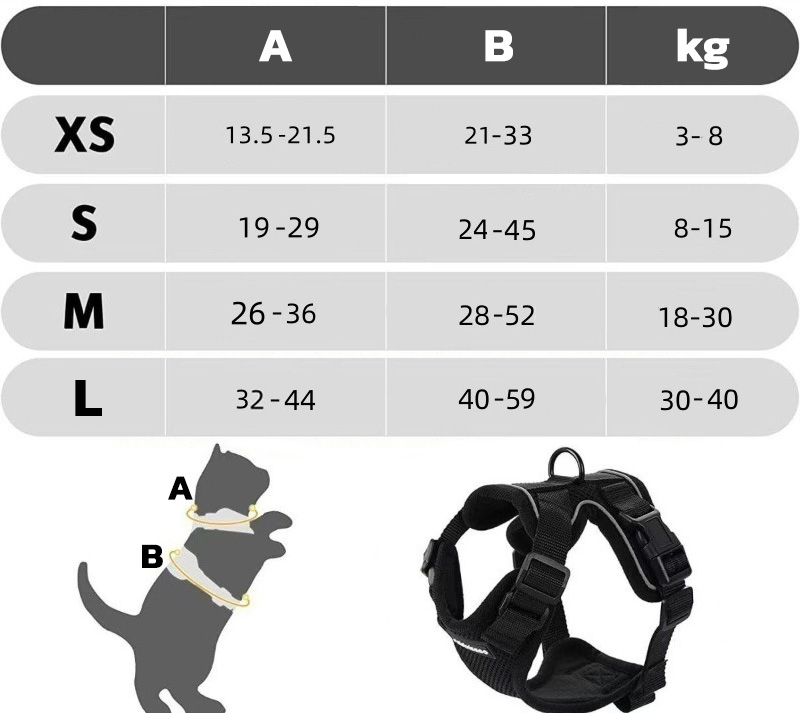 Чтобы правильно подобрать размер, измерьте обхват шеи кошки (низко, над лопатками) – мерка А, и обхват груди в самом широком месте – мерка Б, как на картинке ниже. Затем сравните свои измерения с таблицей размеров. Некоторые размеры перекрываются – в этом случае учитывайте, растет ли собака, а также ее темперамент – чем крупнее и энергичнее собака, тем больший размер следует выбирать.