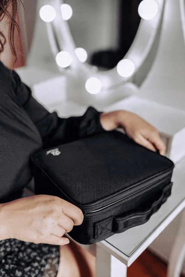 - Практично — благодаря регулируемым перегородкам вы можете самостоятельно планировать пространство. Внутри есть большой карман на молнии, в который можно положить палитру теней, зеркальце и 4 практичных кармана, в которые можно положить, например, кисти, помаду.