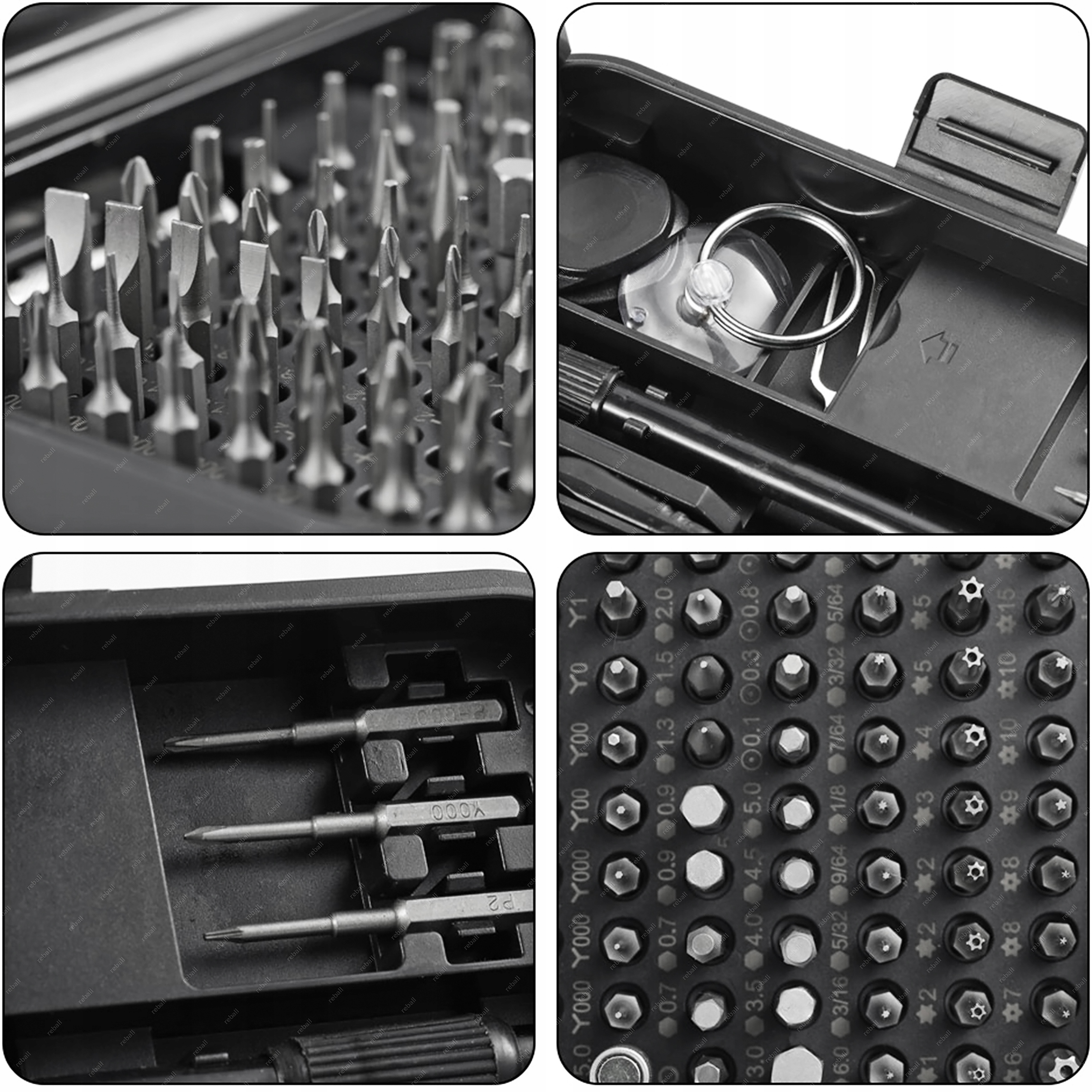 <ул>В комплект входят 117 прецизионных бит H4 (насадки) длиной 25 мм: