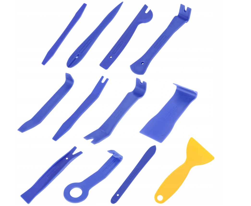 Специализированный набор для демонтажа обивки и молдингов автомобиля удобен в использовании, отличается устойчивостью к повреждениям и в то же время ограничивает риск повреждения и царапинобивки и окрашенных элементов.