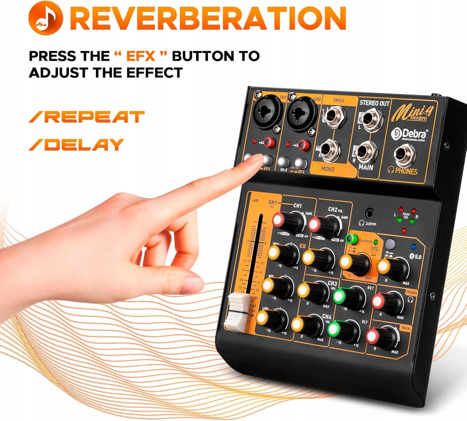 Профессиональный 4-канальный аудиомикшер Mini4, блок питания Bluetooth, 48 В