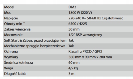 Легкая, высокоскоростная буровая установка мощностью 1800 Вт, предназначенная для быстрого сверления отверстий диаметром до 52 мм. Идеальный станок для сверления отверстий под анкеры.