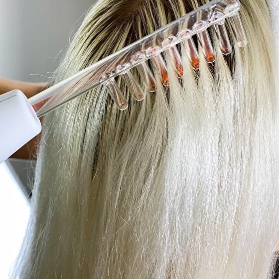 - Электрод-гребень: заряжает волосяные фолликулы энергией, улучшает кровообращение и стимулирует волосы рост.