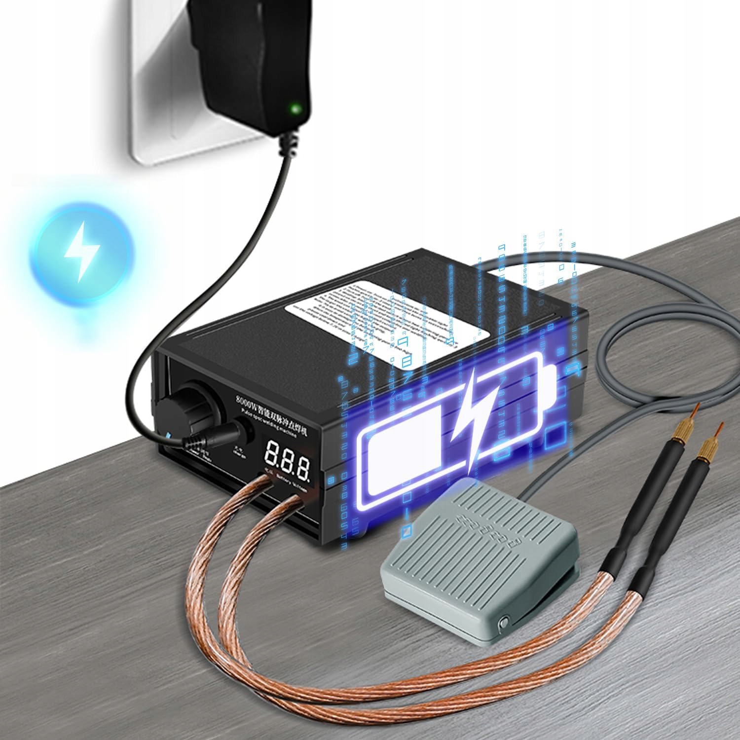 ПРОФЕССИОНАЛЬНЫЙ АППАРАТ ДЛЯ ТОЧЕЧНОЙ СВАРКИ ВЫСОКОЙ МОЩНОСТИ 8000 ВТ С ПЕДАЛИ НА 18 650 ЯЧЕЙОК