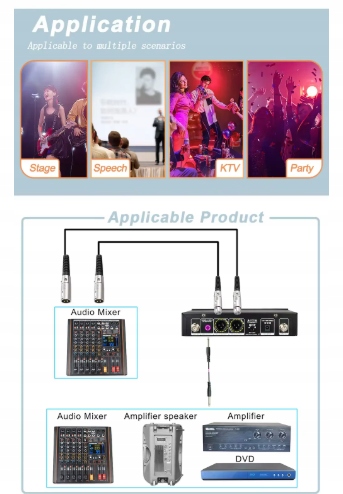 Профессиональный двойной беспроводной микрофон УВЧ с металлическими ручными микрофонами. Идеально подходит для сценических применений, в церквях, конференц-залах, караоке-мероприятиях, свадьбах и презентациях.