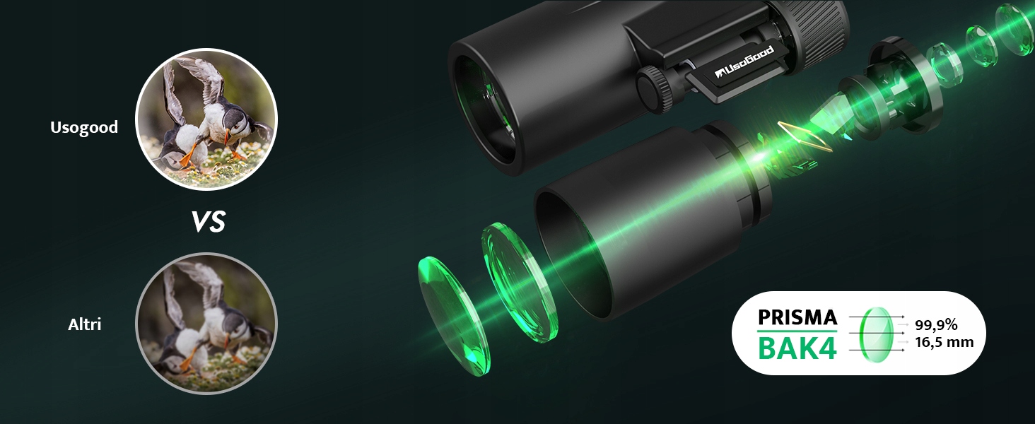 - Смотрите с биноклем Usogood с диаметром выходного зрачка 4,2 мм, вы увидите изображение настолько яркое, как если бы вы видели его невооруженным глазом.