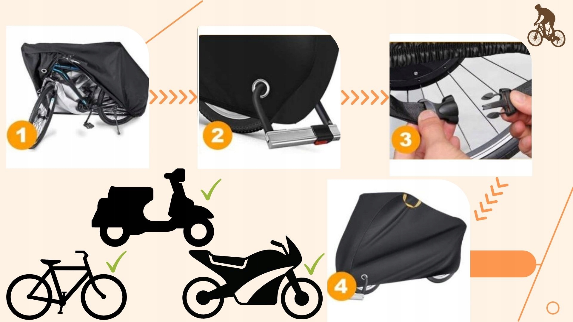 - ✅ Чехол универсальный и подходит для велосипедов, скутеров и мотоциклов
