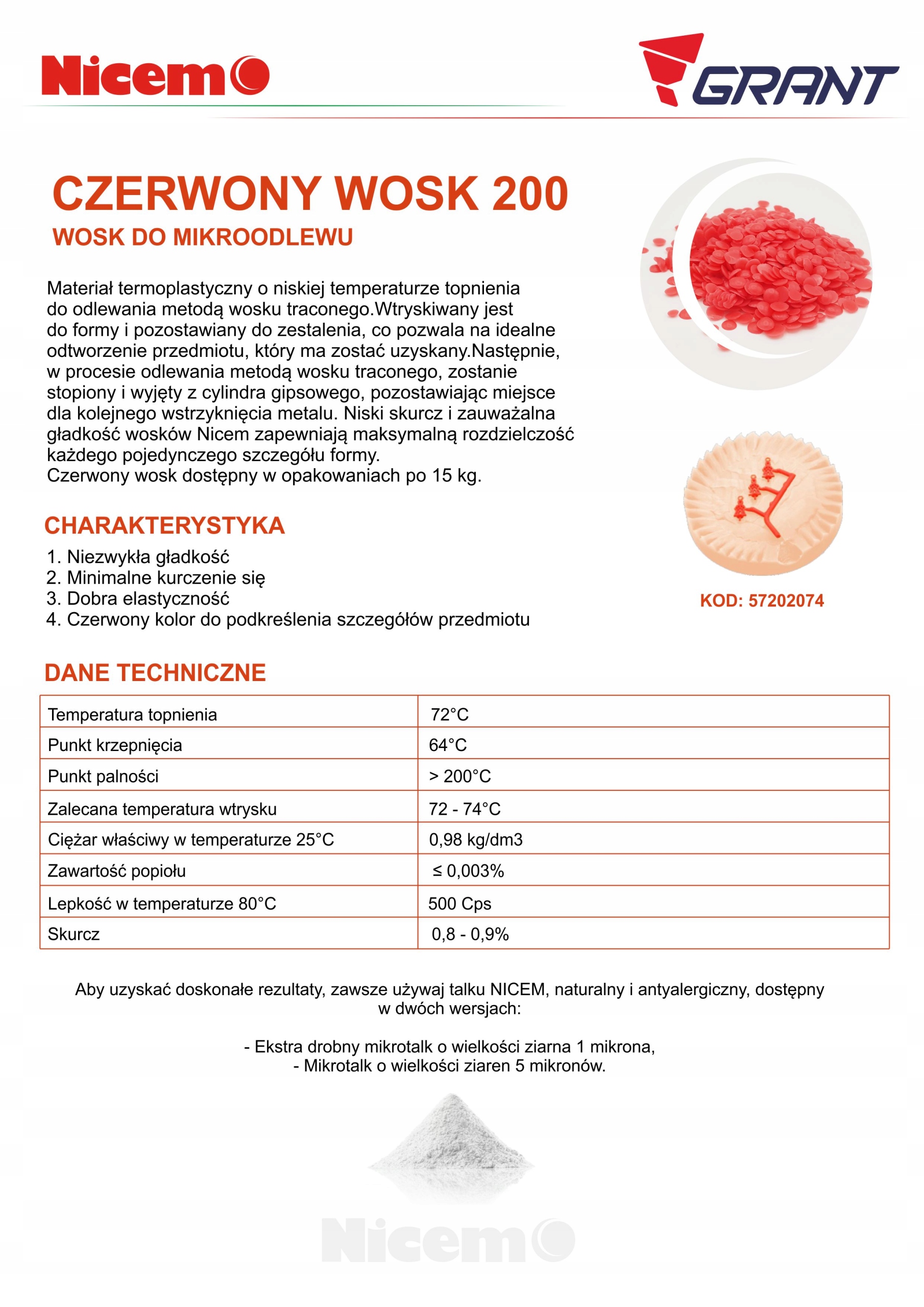 Термопластичный материал с низкой температурой плавления для литья по выплавляемым моделям. Его впрыскивают в форму и оставляют затвердевать, что позволяет получить идеальное воспроизведение объекта. Затем, в процессе литья по выплавляемым моделям, он расплавляется и удаляется из гипсового цилиндра, оставляя место для еще одного впрыска металла. Низкая усадка и заметная гладкость восков Nicem обеспечивают максимальное разрешение каждой детали формы.