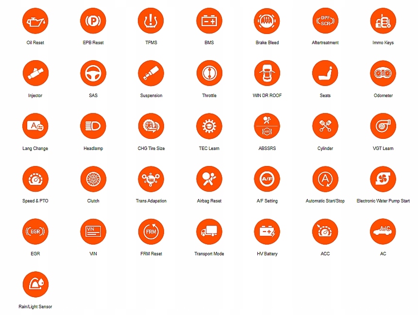 - полная поддержка сажевого фильтра DPF (проверка уровня сажи, сброс, регенерация, адаптация после замены)