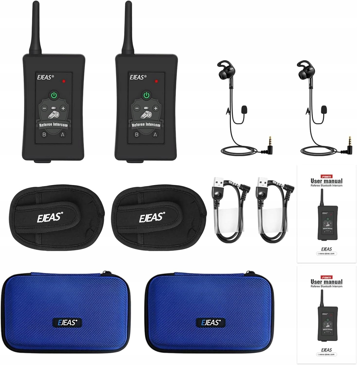 ejeas fbim Professional Intercom Intercom с футбольным интерком судей, онлайн -интерком для 4 человек, снижение шума CVC, водонепроницаемый IP65, с карманом плеча (2 штуки) h1>