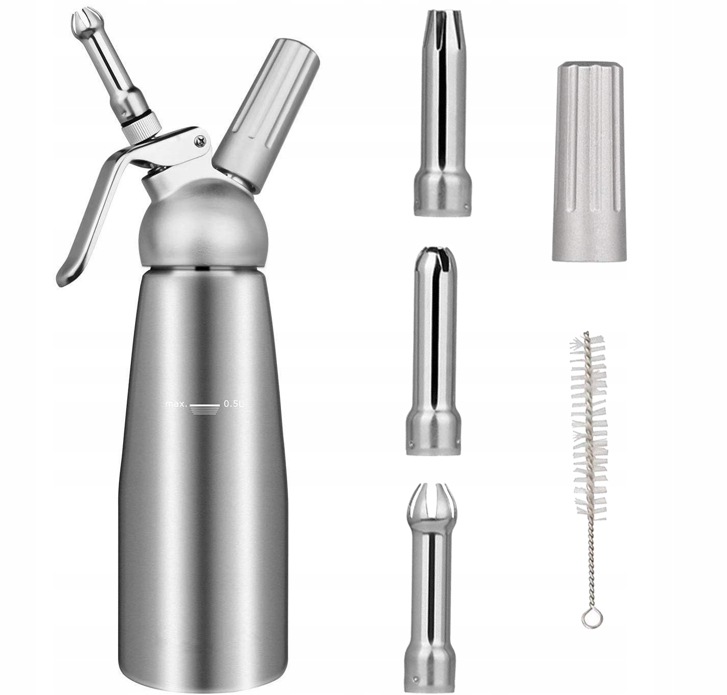 ПРОФЕССИОНАЛЬНЫЙ ДОЗАТОР ДЛЯ КРЕМОВ ОБЪЕМОМ 0,5 Л С 3 НАСАДКАМИ, ПРОЧНЫЙ СИФОН ДЛЯ КРЕМОВ