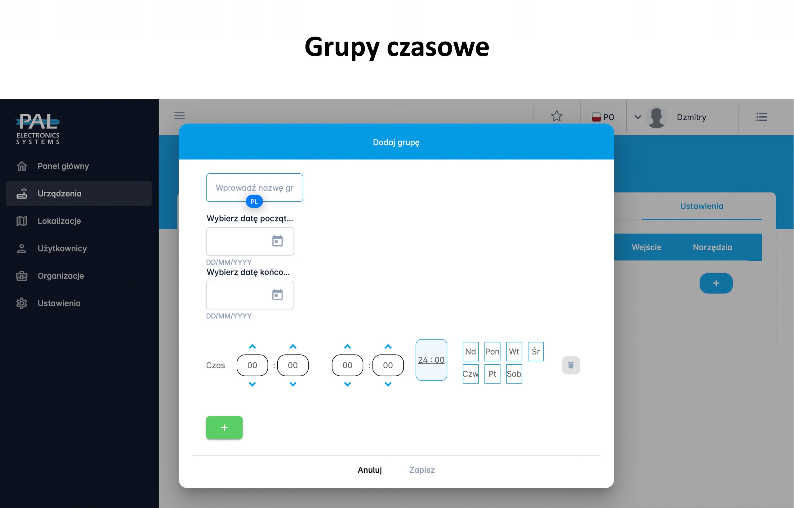 - Расписания - возможность указать, в какие дни недели и в какие часы данный человек может открыть ворота или шлагбаум.