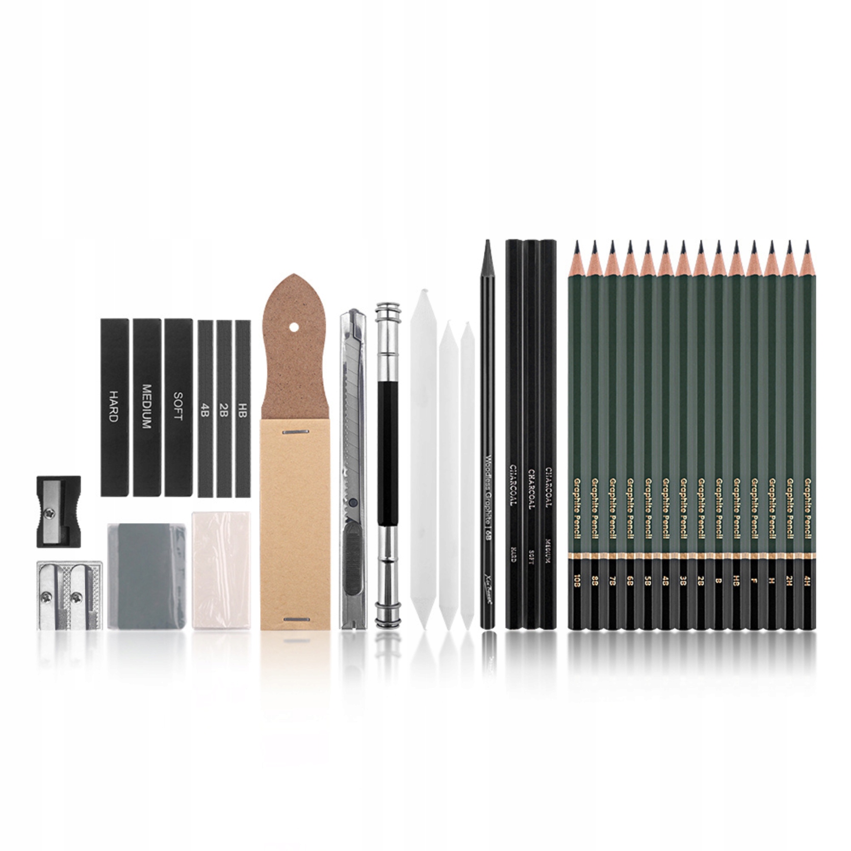 Начните наброски сразу же - Полный набор инструментов для рисования для начинающих, учеников художественных школ и любителей. Тщательно выбранные элементы позволяют создавать наброски, затенение, смешивание и точную коррекцию.
