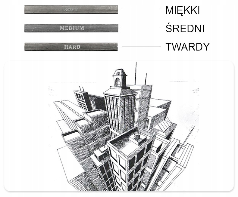 ✔️ Множество типов карандашей. Твёрдые карандаши подходят для эскизов, контуринга и технического рисования. Они легко протираются и блестят. Мягкие карандаши можно использовать для растушевки и позволяют получить более насыщенный цвет без металлической полосы, которая часто возникает при слишком сильном нажатии на твердый карандаш.