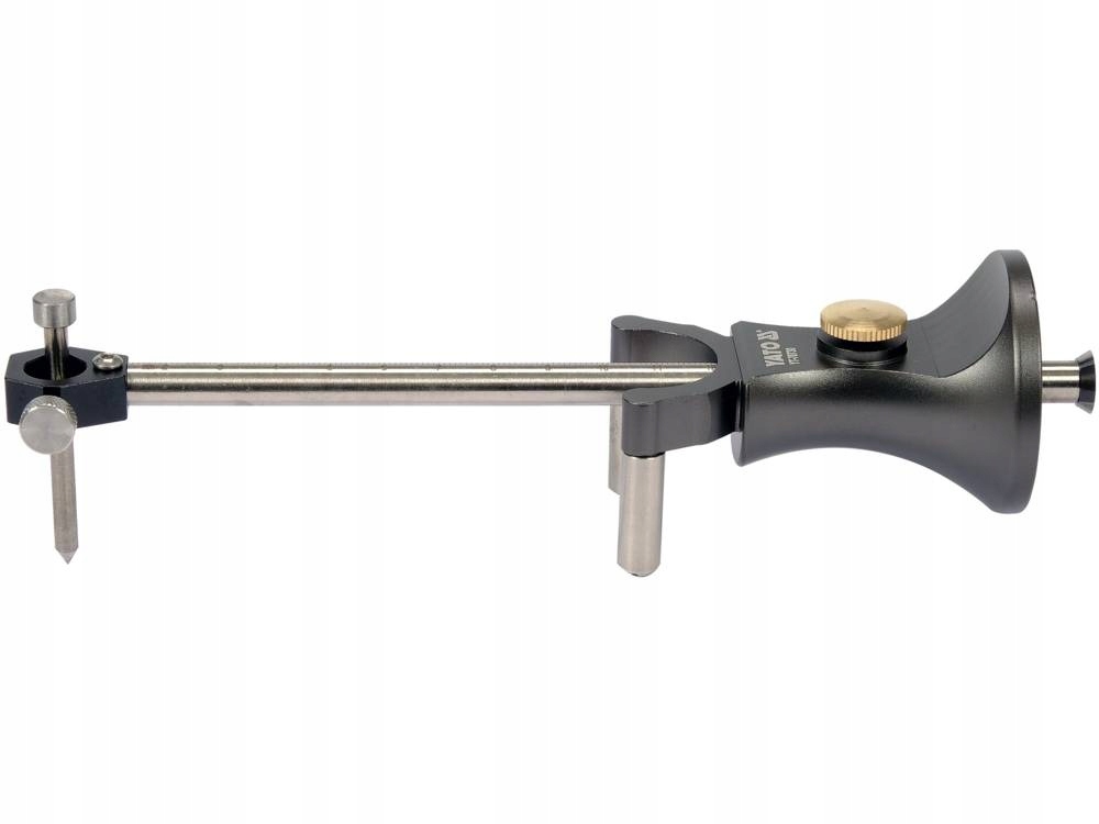 В комплект входят стилус для разметки линий на металле, маркер для рисования и твердосплавный круг для разметки на твердых материалах, таких как керамическая плитка или стекло. Кронштейн имеет миллиметровую шкалу.