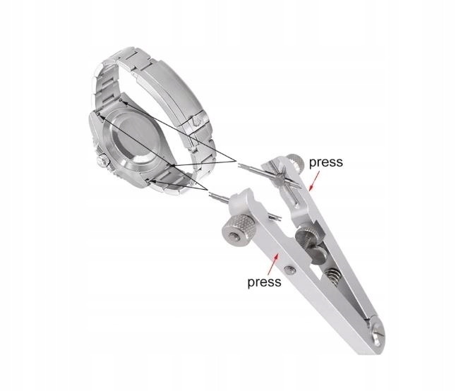 Профессиональное устройство для замены браслетов и ремешков, удобное и безопасное в использовании. Переменный угол наклона кончиков, надежный захват и простота регулировки обеспечивают удобство и безопасность браслета и корпуса от царапин.
