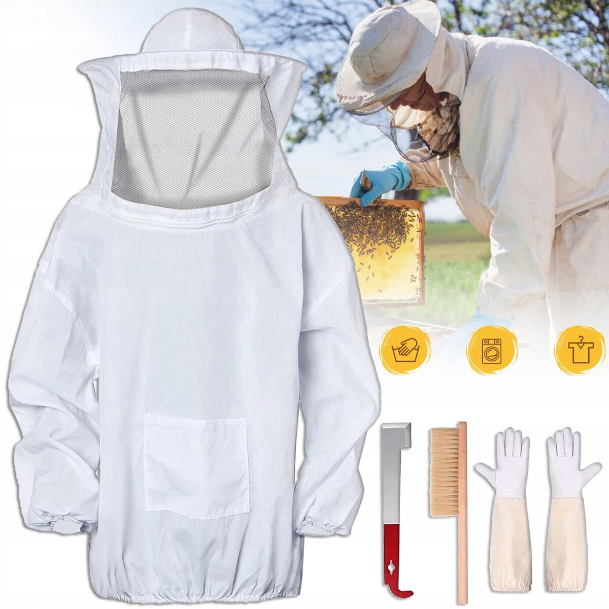 Наши пчеловодческие костюмы для мужчин и мужчин могут быть вымыты вручную. Пчеловодческие куртки требуют технического обслуживания из -за характера работы, потому что после многих циклов использования накапливается грязь. После стирки просто повесите их, чтобы высохнуть.