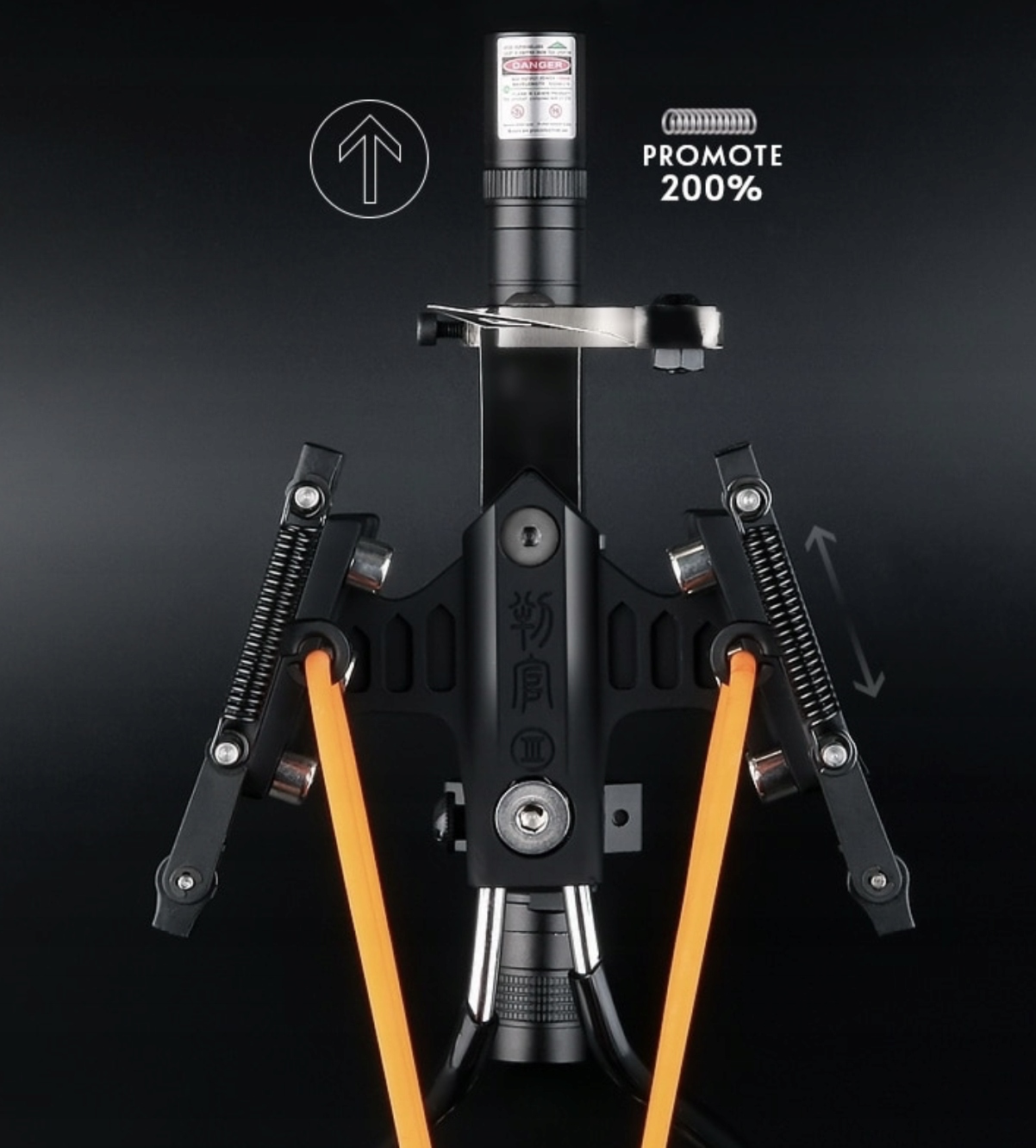- Лазерный прицел в виде зеленого лазера, прикрепленного к передней части рогатки, мощностью 500 мВт облегчит наведение на выбранную цель.