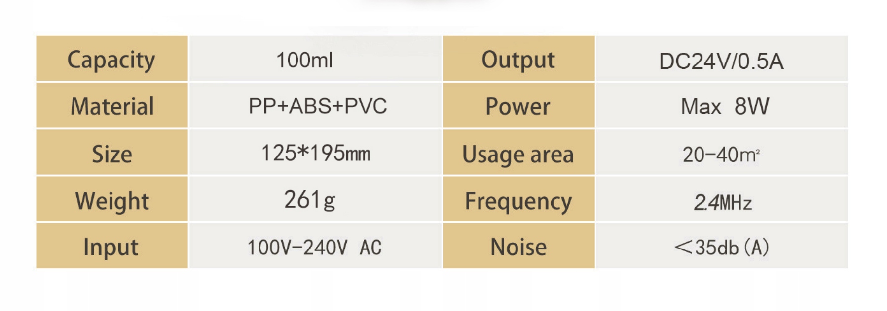 - Эффективность тумана: макс. 20мл/ч (помещения до 40м2)