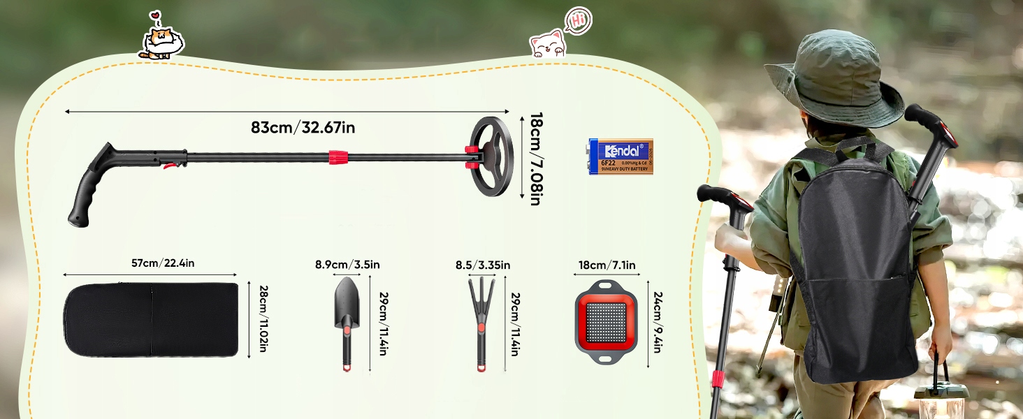 -Ручка небольшого детектора металла регулируется в диапазоне 16-33 дюймов (66-83 см) и подходит для детей всех возрастов и с разными высотами.