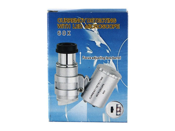 Карманный микроскоп с 60-кратным увеличением, 2-мя светодиодами и УФ-ультрафиолетовым освещением позволяет увидеть мельчайшую царапину или отпечаток пальца на руке. Он позволяет увидеть гораздо больше, чем возможно невооруженным глазом.