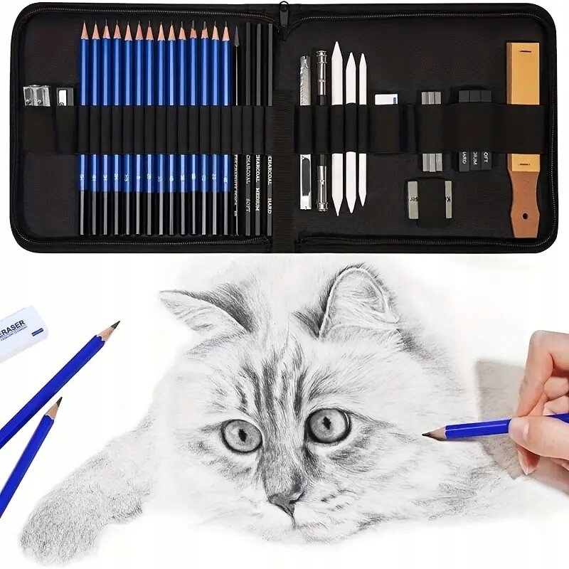 Профессиональный набор карандашей и принадлежностей для рисования незаменим для любителей и профессиональных художников.